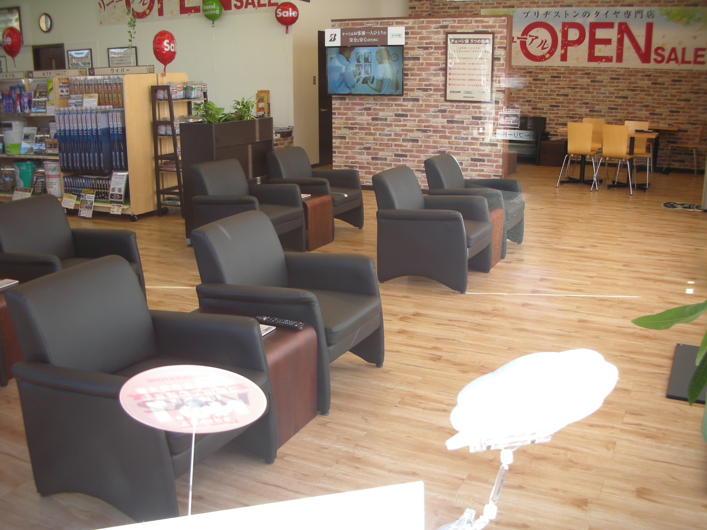 そんな貴重なお休みの中、スタッドレスタイヤへのお履き替え、オイル交換等でご来店をされる方に少しでも快適にお待ちいただけるよう、タイヤ館入間ではウェイティングコーナー(待ち合い)をご用意させていただいております。