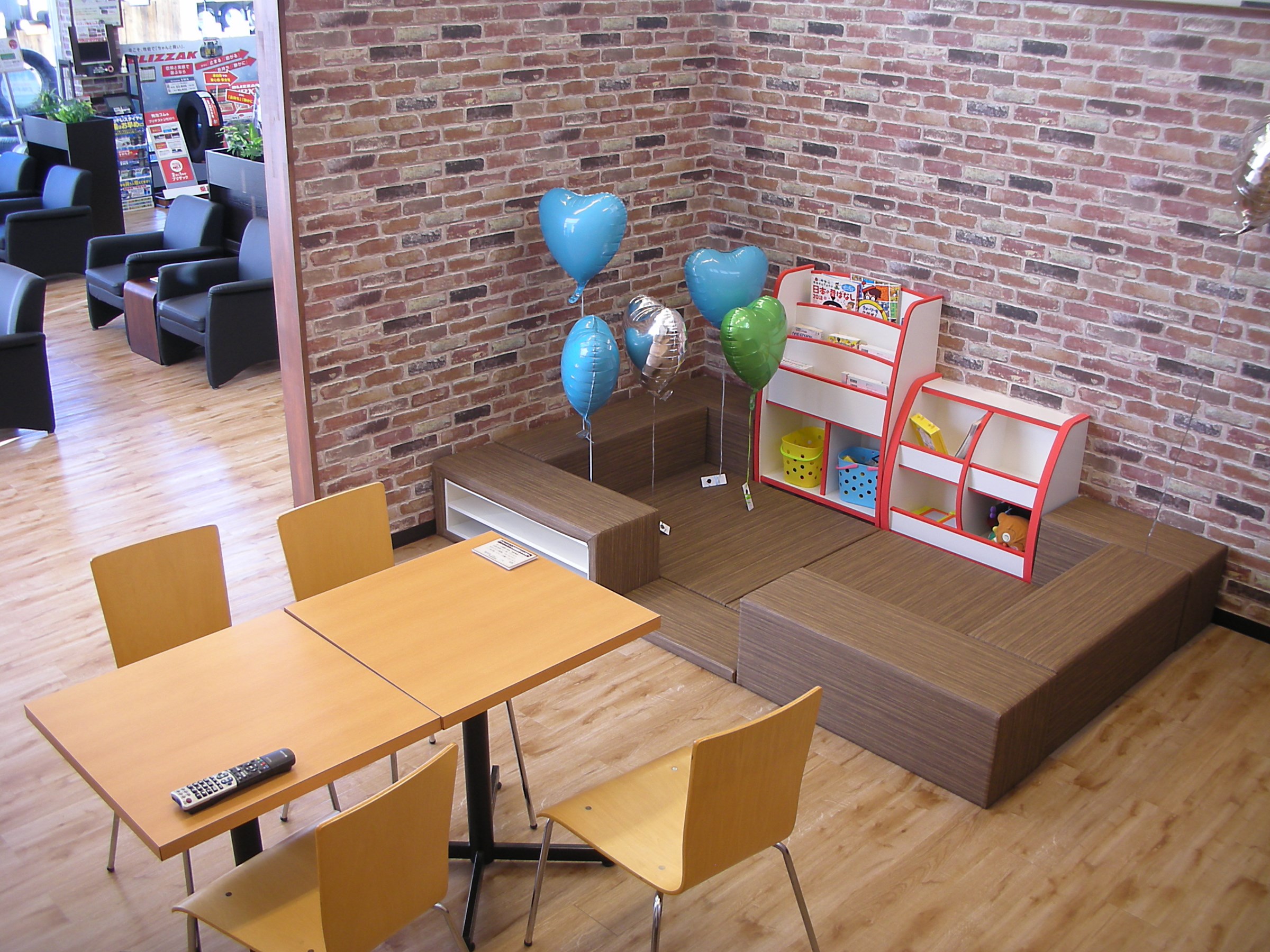 奥の壁の裏にはお子様用にキッズスペースをご用意。