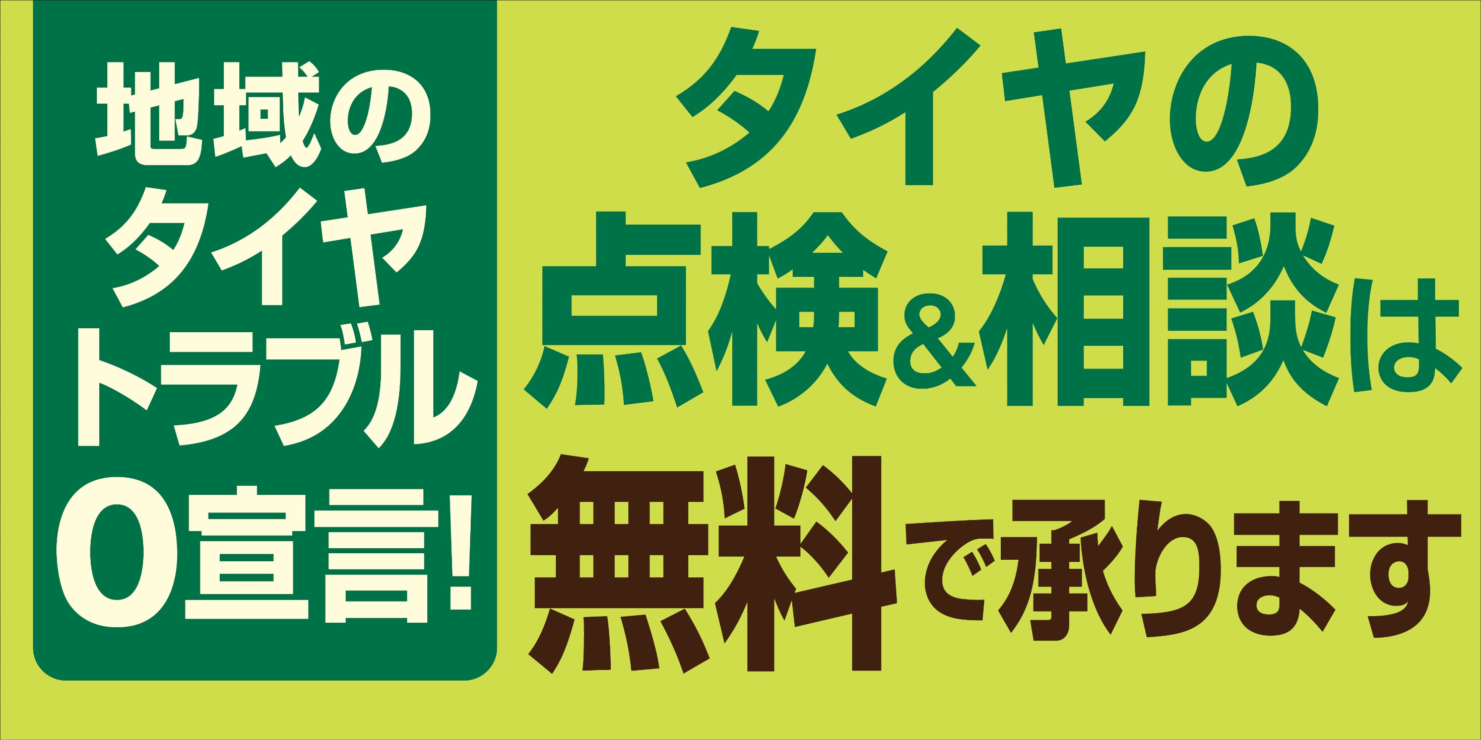 地域のタイヤトラブル0宣言! ポスト 2018年1月18日 タイヤトラブルを未然に防ぐために、タイヤの点検、おまかせください。 無料です。 空気圧、偏摩耗、ひび割れ、残ミゾ、キズ、変形 見えづらい部分までお客様に代わって点検します! 気になることはなんでもご相談ください。