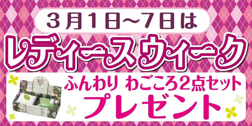レディースウィークあしたまで ポスト 2018年3月5日 毎月1日~7日で開催させていただいています、レディースウィーク ですが今月は定休日の関係で明日3/6(火)までとなります。。。 女性のお客様のオイル交換がお買い得! 商品ご購入のお客様にはプレゼントをお渡ししています! 明日までの「レディースウィーク」を是非ご利用ください。