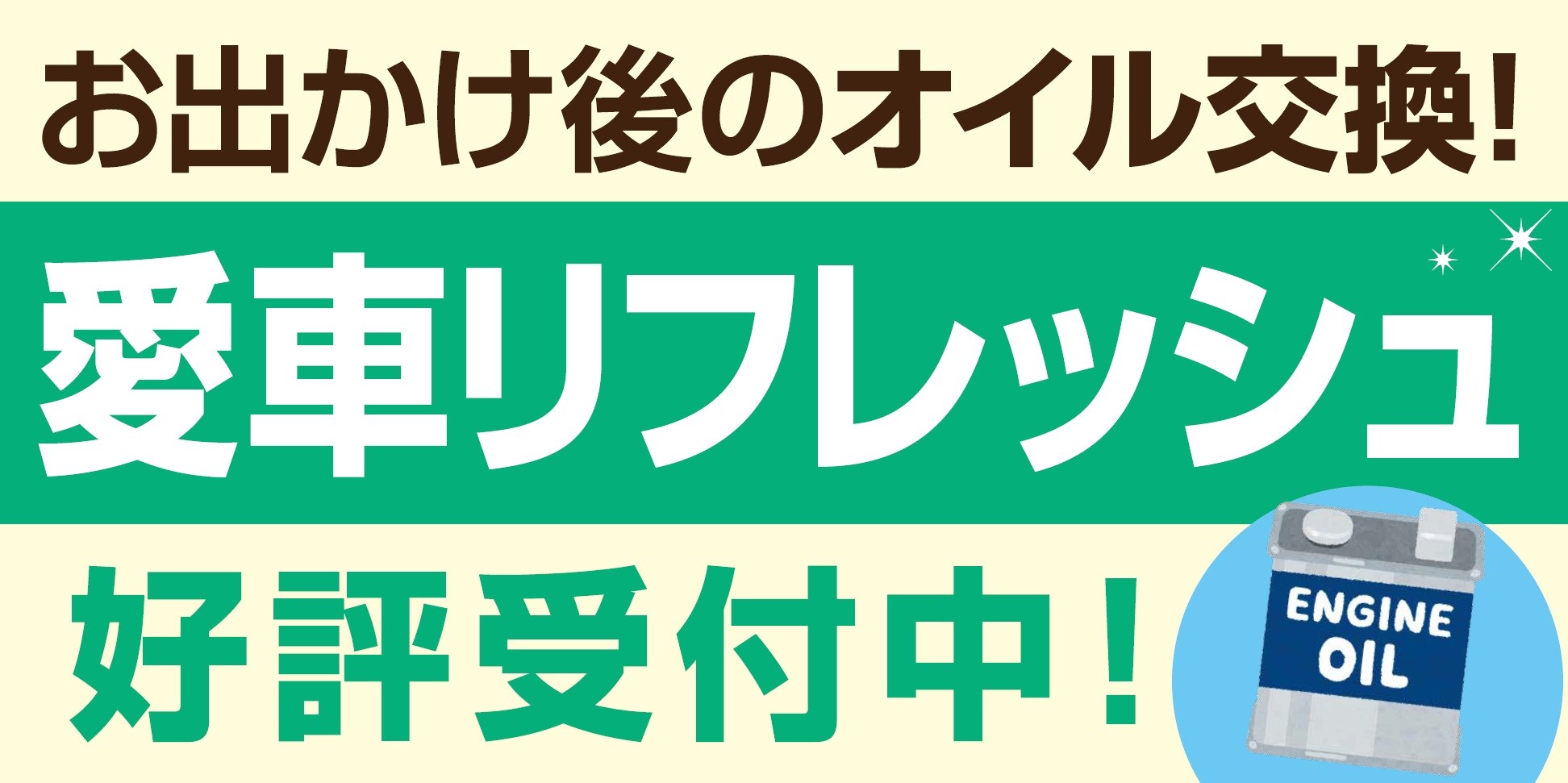 GWでお疲れ気味の愛車をリフレッシュ ポスト 2018年5月7日 大型連休GWも終わってしまいましたね。 ご家族と、大事な人とのお出掛け楽しめましたか? 連日高速道路では渋滞○○Kmなんてニュースも流れていましたが 皆様、運転お疲れ様でした! さて、お疲れ気味なのは運転されていた方だけではないんです! 長距離の走行、渋滞での冷却不足…、お車のエンジンも結構お疲れ気味… トラブルを未然に防ぐ為にも、愛車のリフレッシュ:オイル交換はいかがですか? 担当:荻野