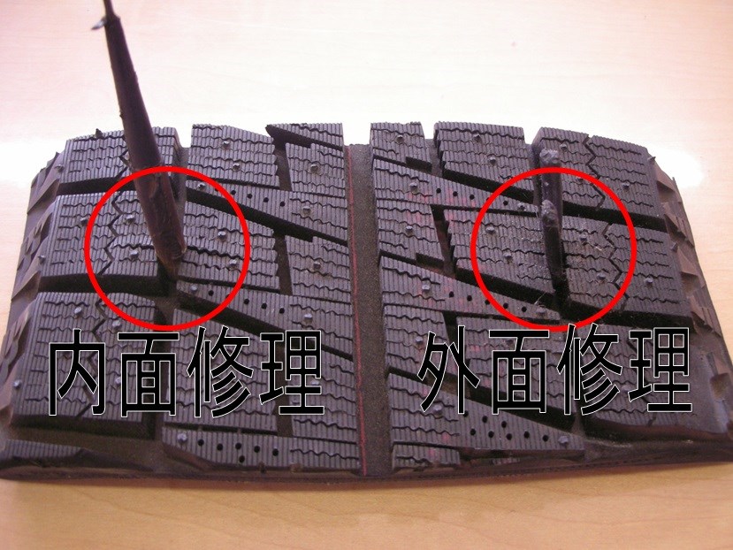 パンク修理には【内面修理】と【外面修理】の2種類の修理方法がございます。