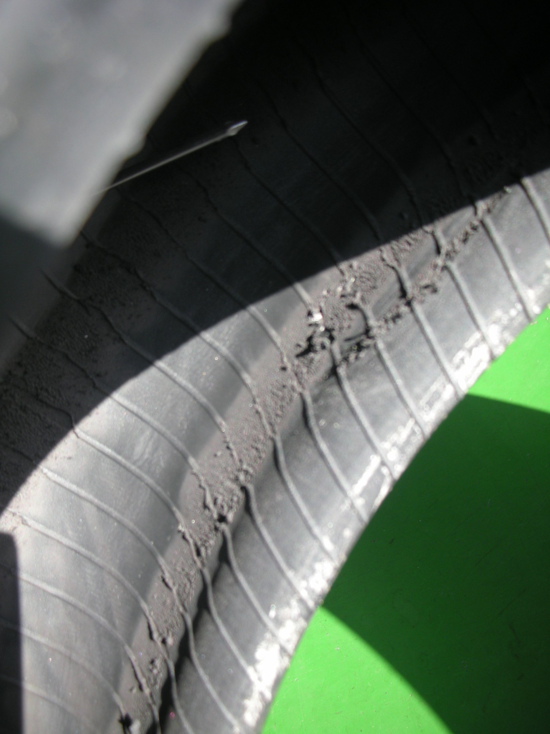 潰れた状態で走ったことがある方、エア圧が基準値の半分~半分以下で走ったことがある方は今大丈夫であっても要注意です。