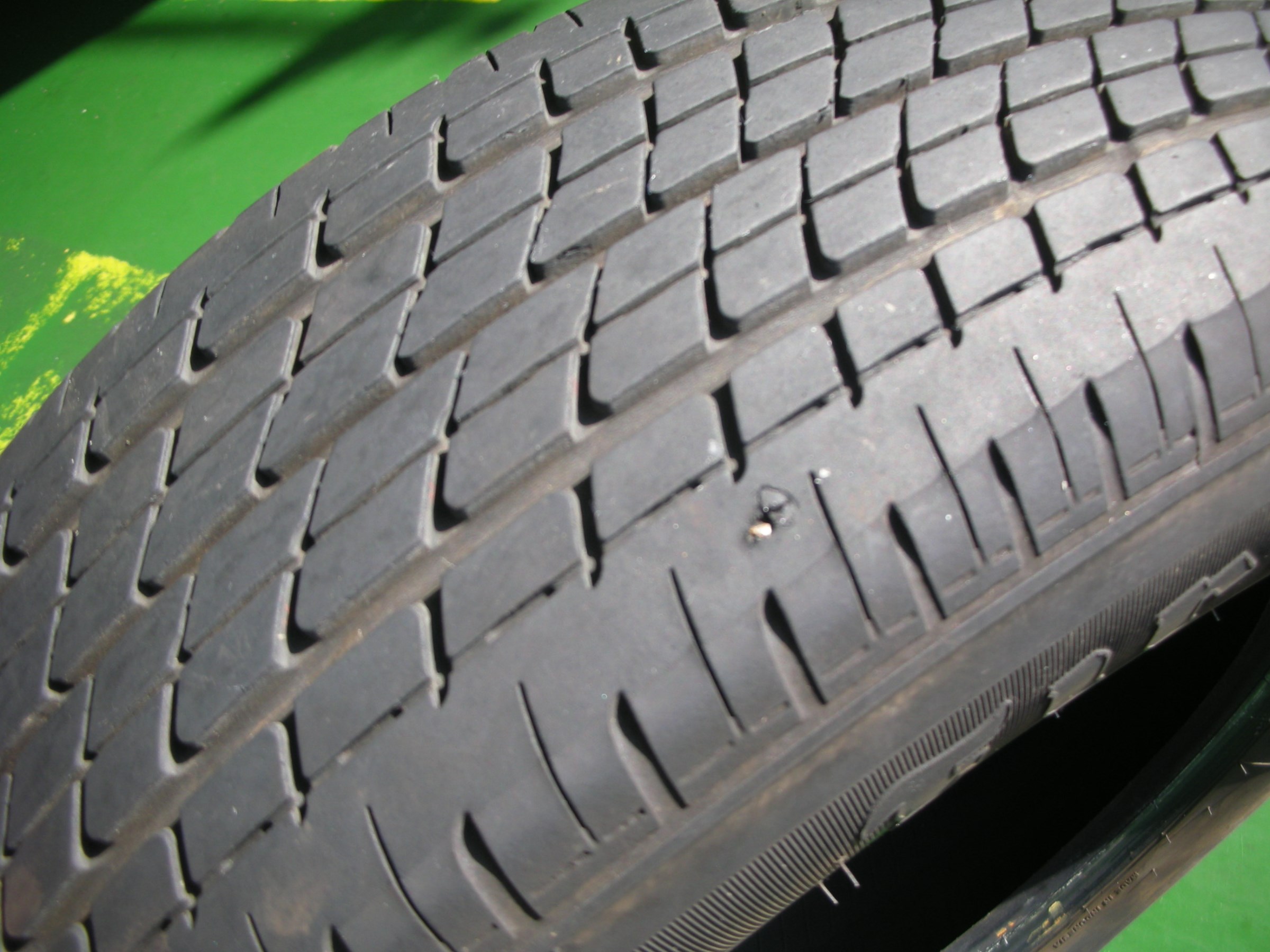 クギが長かったからかも知れませんが、低圧(空気少ない状態)で多少とはいえ走ってしまったのが原因かと思われます。このような【引きずり】が起きてしまうと、パンク修理ではなく、タイヤ交換となってしまいます。