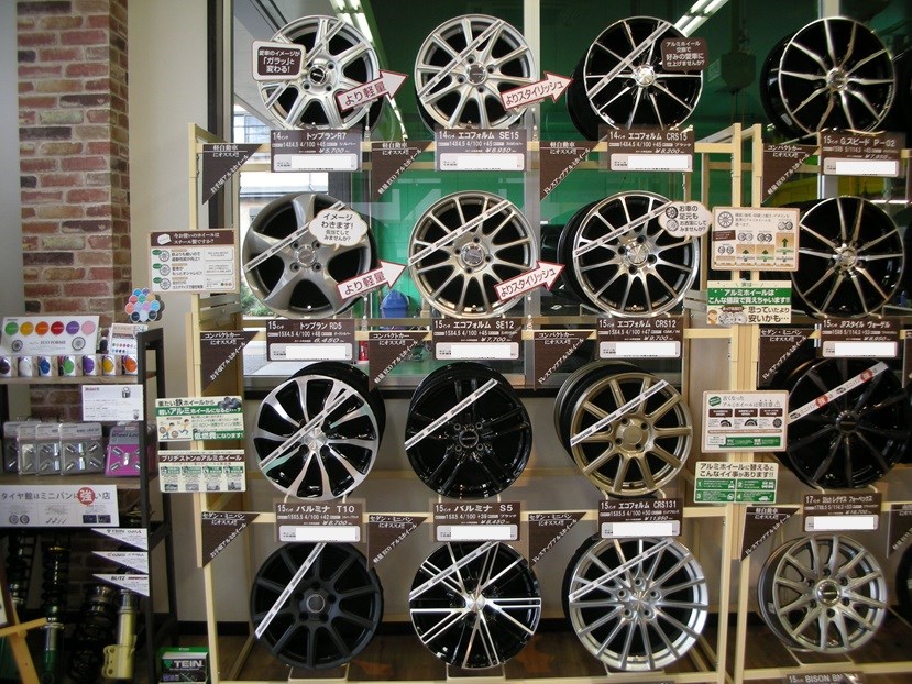 ホイールも実際にお客様のおクルマに並べてみるコトで、お客様の愛車に似合うホイールがイメージしやすくなります♪