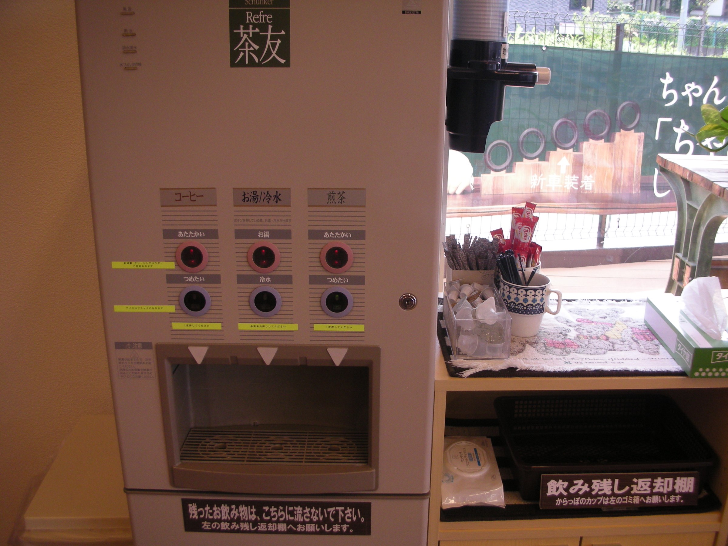 セルフサービスにはなりますが、フリードリンクとしまして、コーヒー(ホット/コールド)、煎茶(ホット/コールド)、お水、お湯をご用意しております♪