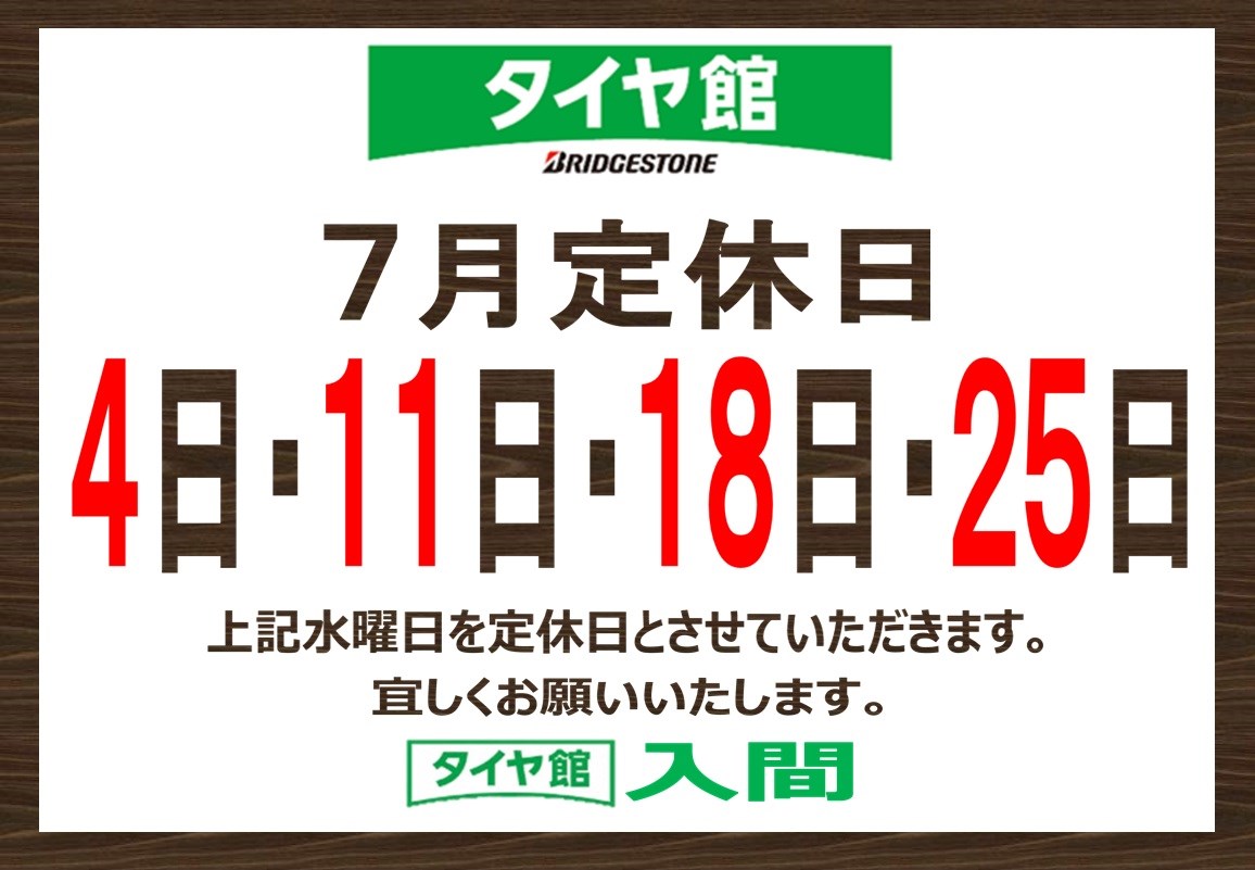 タイヤ館入間 7月の定休日は上記の通りとなります。