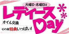 次回のレディースデイは6月13日(火)でオイル交換などがお得!!