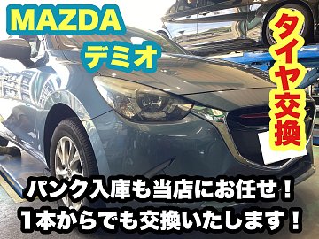 みなさんこんにちは♪ 本日は、MAZDA デミオのタイヤ交換です。 今回のお客様は、パンクにてご来店になります(・・;) 当店は、タイヤ1本からの交換OKです! パンクトラブル等でお困りの際は、是非当店まで! 既にビスを抜いた後ですが ビスを踏んでしまい、エア漏れしたようです。 ホイールからタイヤ...