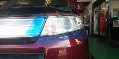 当店では新しくヘッドライトコーティングを始めました。 まずマスキングし黄ばみを取り除く作業と(約10分) コーティングする作業(約5分)です。 新品同様とまではいきませんがなかなか綺麗になります。 詳しくはスタッフまで相談下さい。 コーティング前がこちら コーティング後がこちら