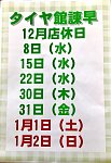 いつもタイヤ館をご利用頂きありがとうございます! 12/15(水)は店休日となっておりますのでお間違いのないようにご確認お願い致します。