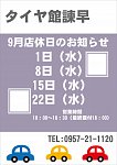 9/1(水)店休日のおしらせです。