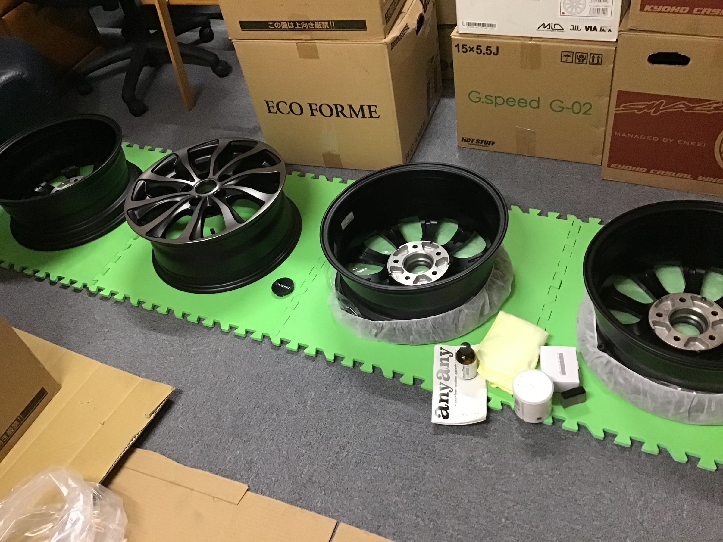 艶消し色のホイールに施工するのは初めてなので仕上がりが楽しみです