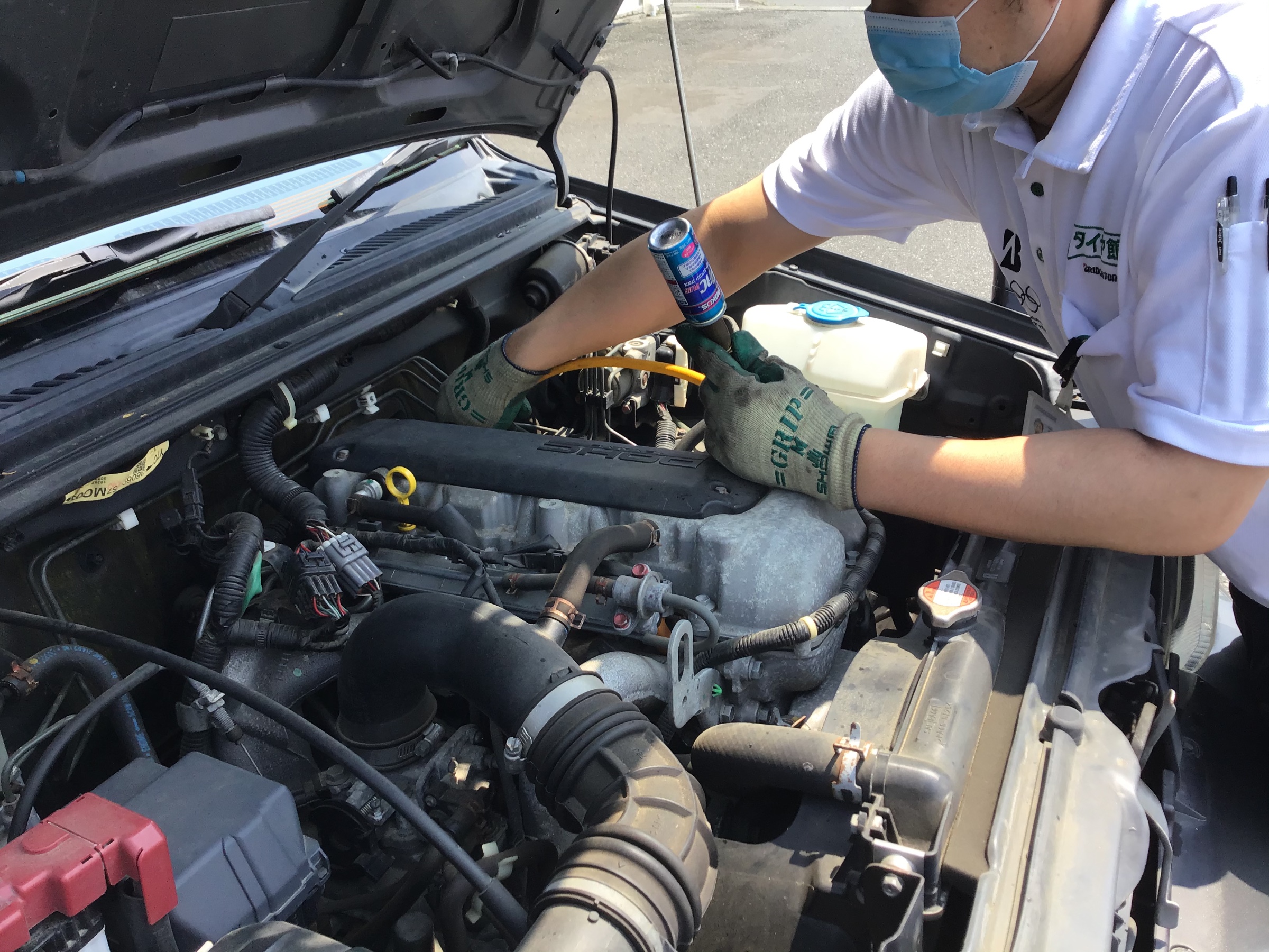 スズキ ジムニーシエラにエアコンガス添加剤注入作業です