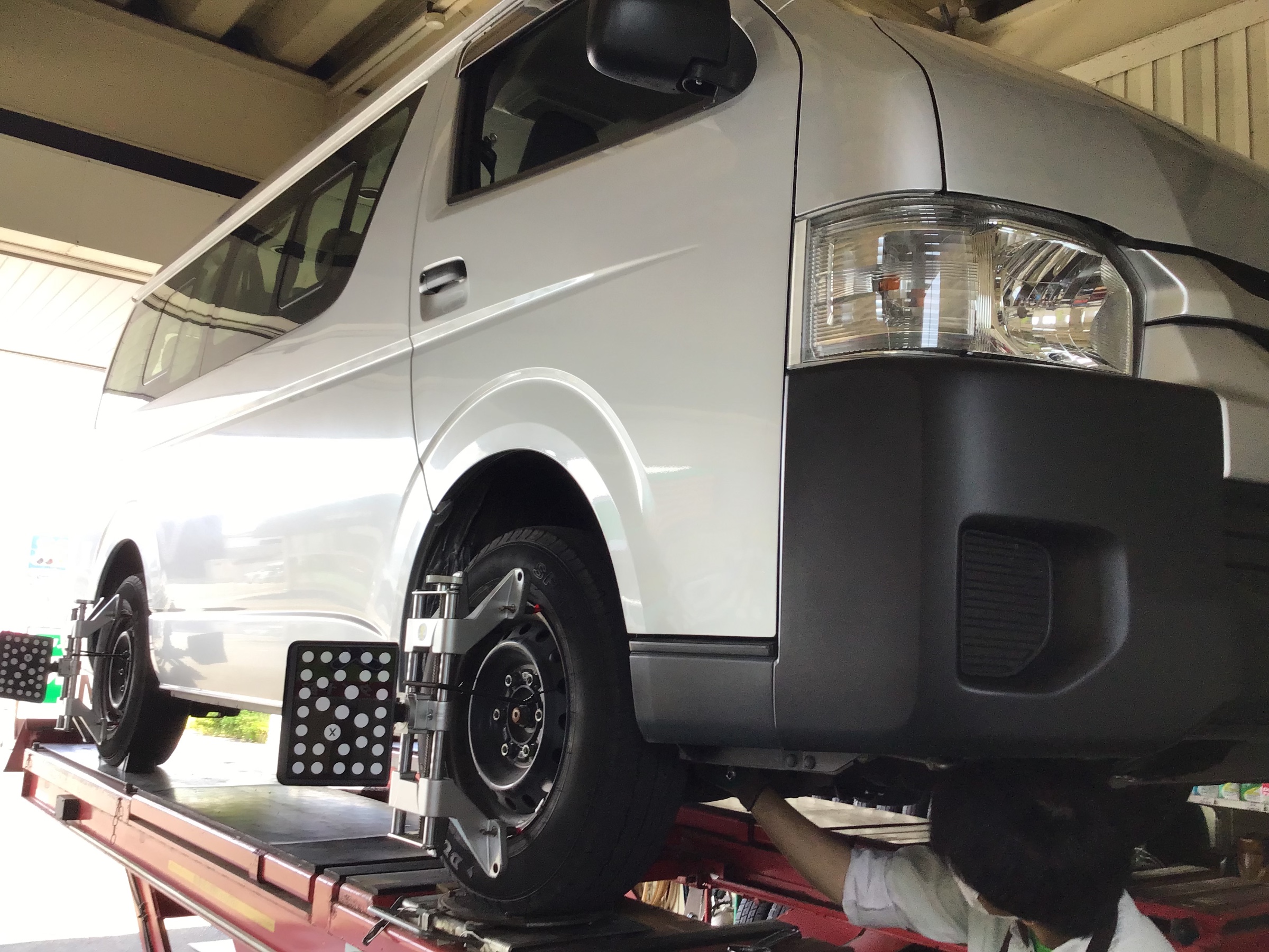 トヨタ ハイエース アライメント調整 タイヤ館石巻あけぼの ポスト 2022年8月8日 いつも当店をご利用いただき誠にありがとうございます 本日の作業の一コマ いつも当店をご利用いただいている修理工場さんからの依頼で トヨタ ハイエースのアライメント調整作業です 測定データからフロント2か所だけの調整で済みました