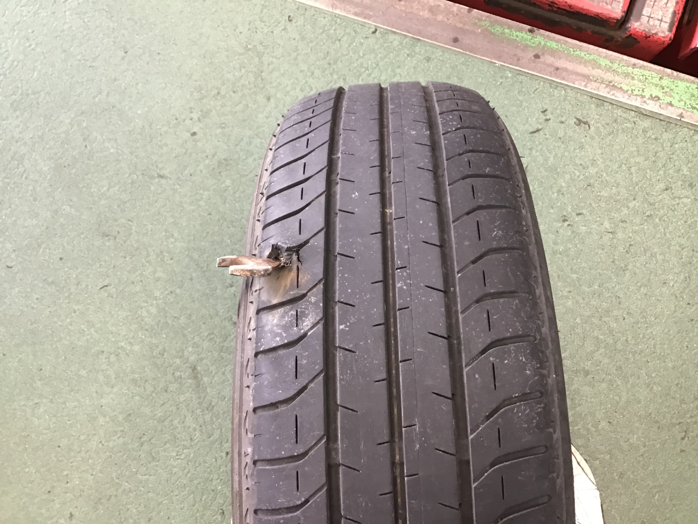 刺さっていたスパナが大きく、スチールホイールにも多少ゆがみが出てしまったので