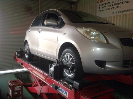 朝一番からタイヤ交換と大好評!!アライメント調整から作業がスタートしました
