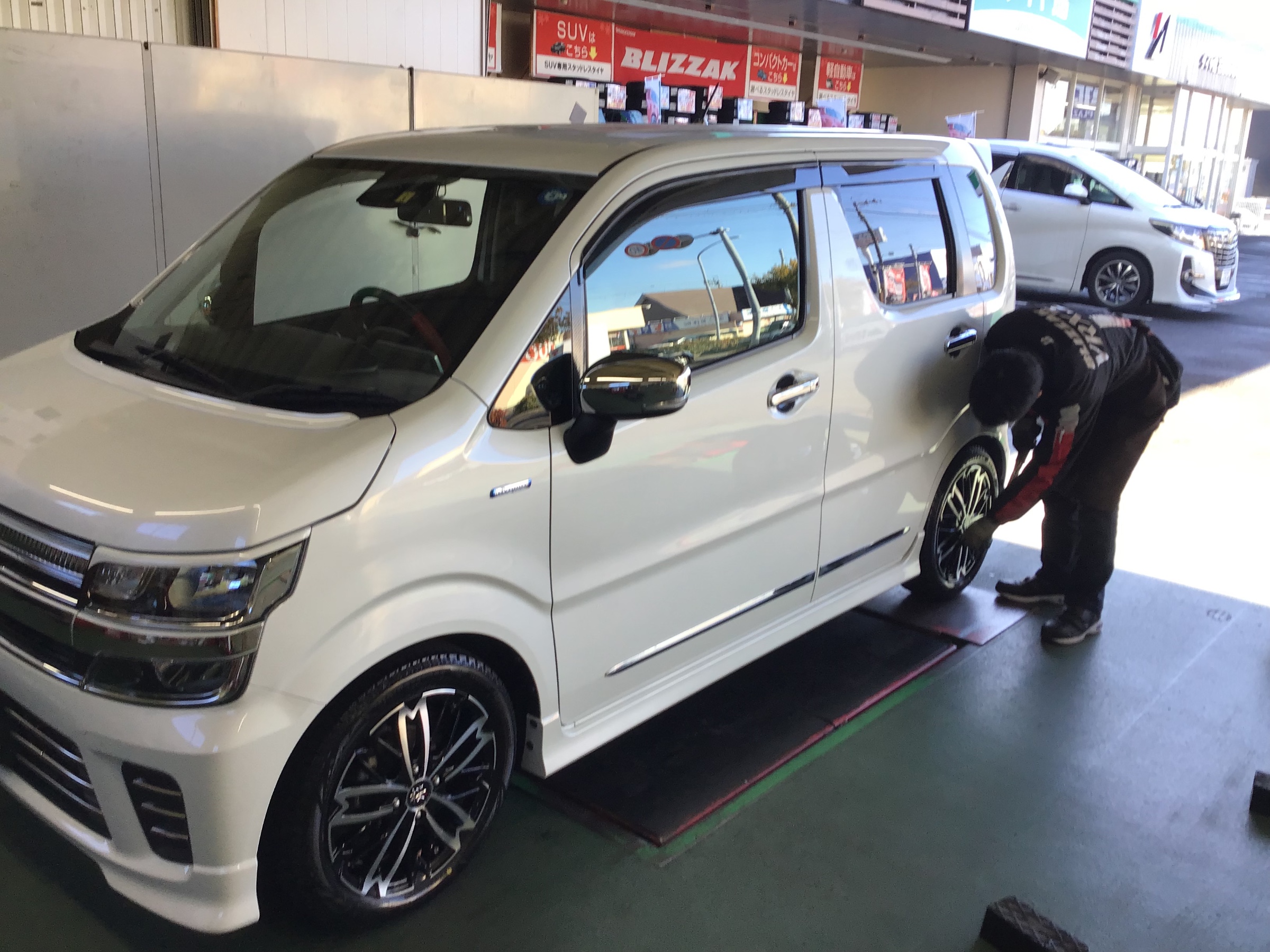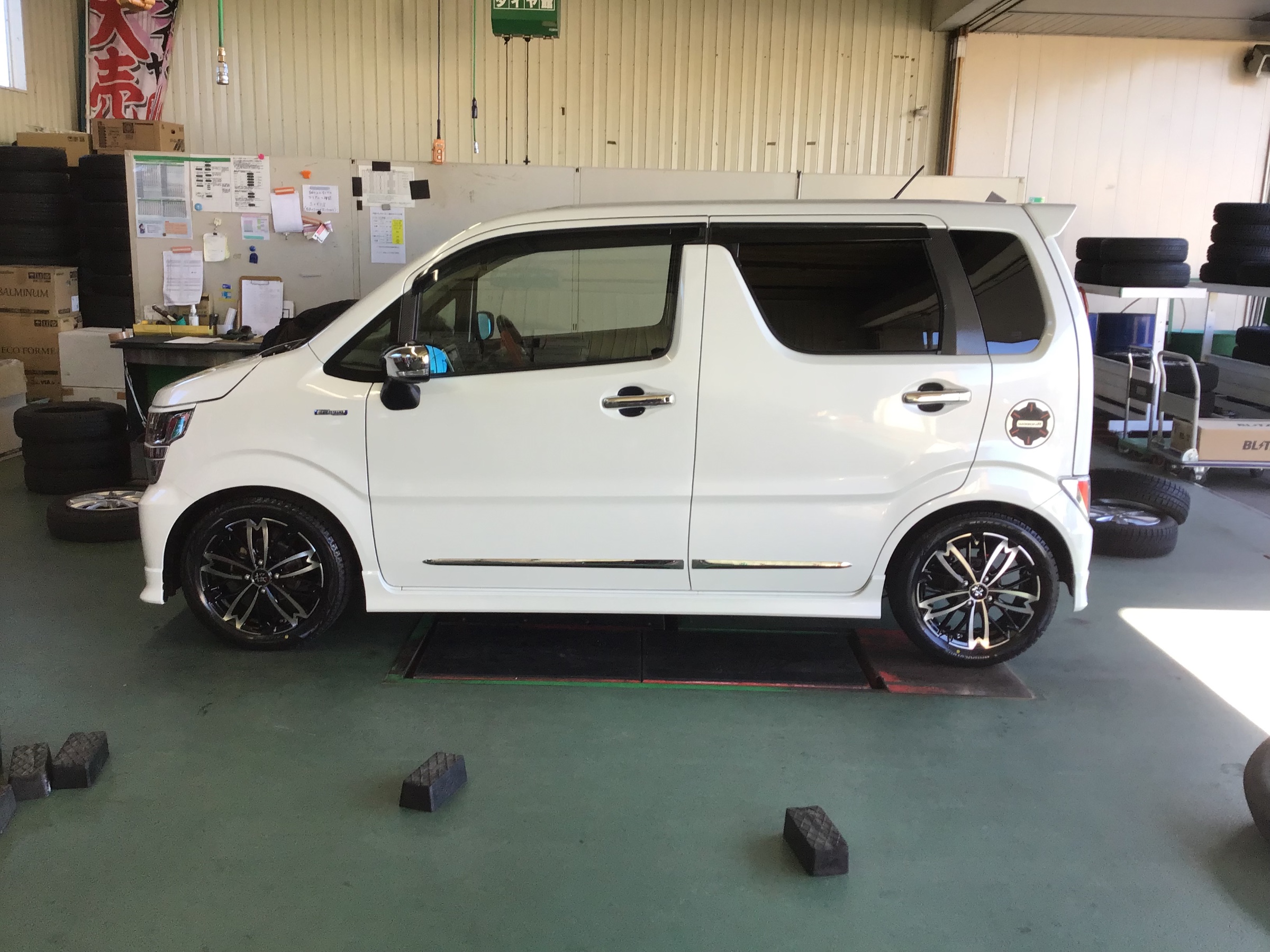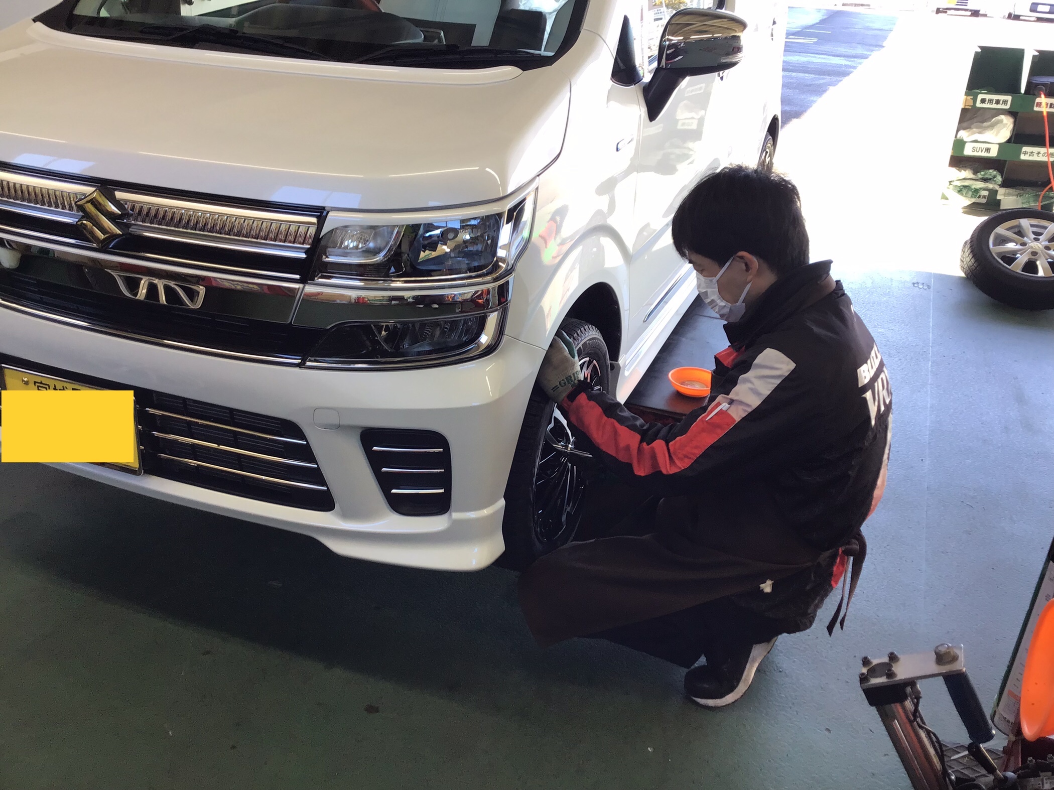 スズキ ワゴンRのタイヤ&ホイールセット交換作業です