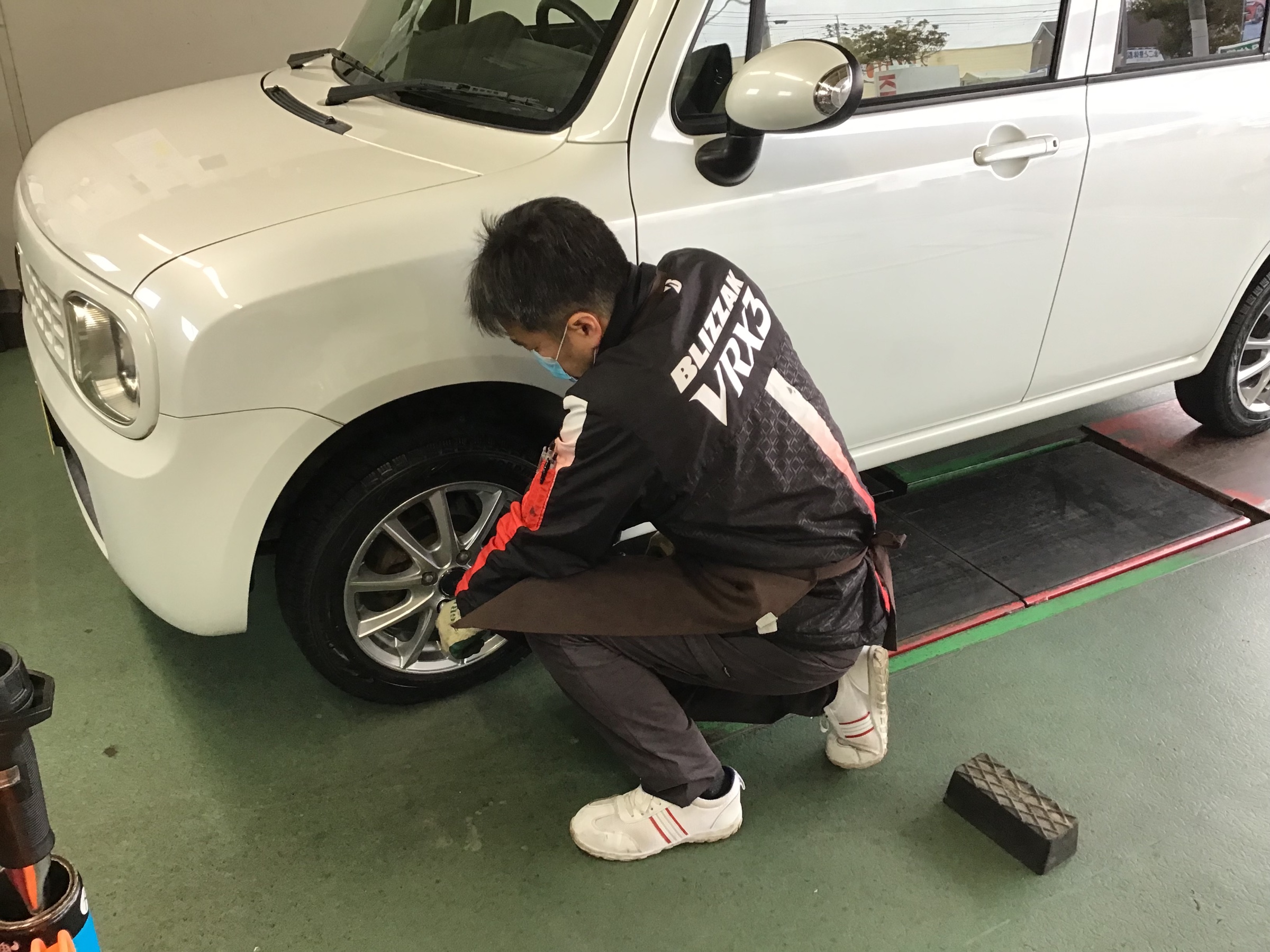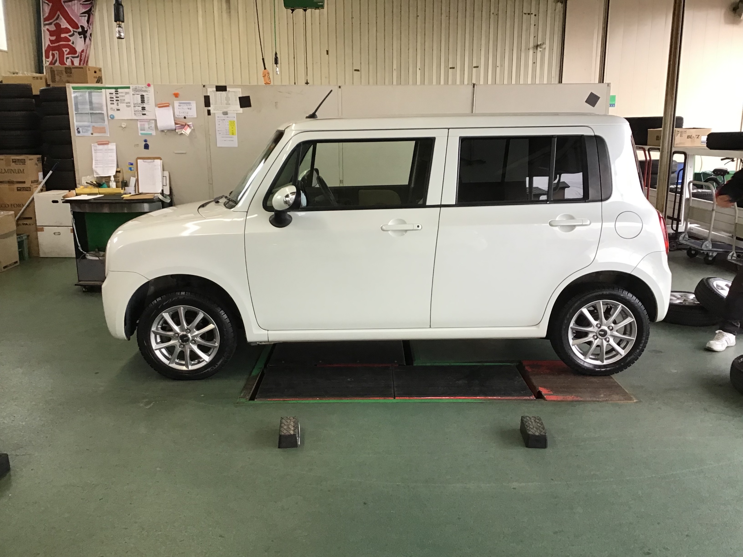 スズキ ラパンのタイヤ&ホイールセット交換作業です