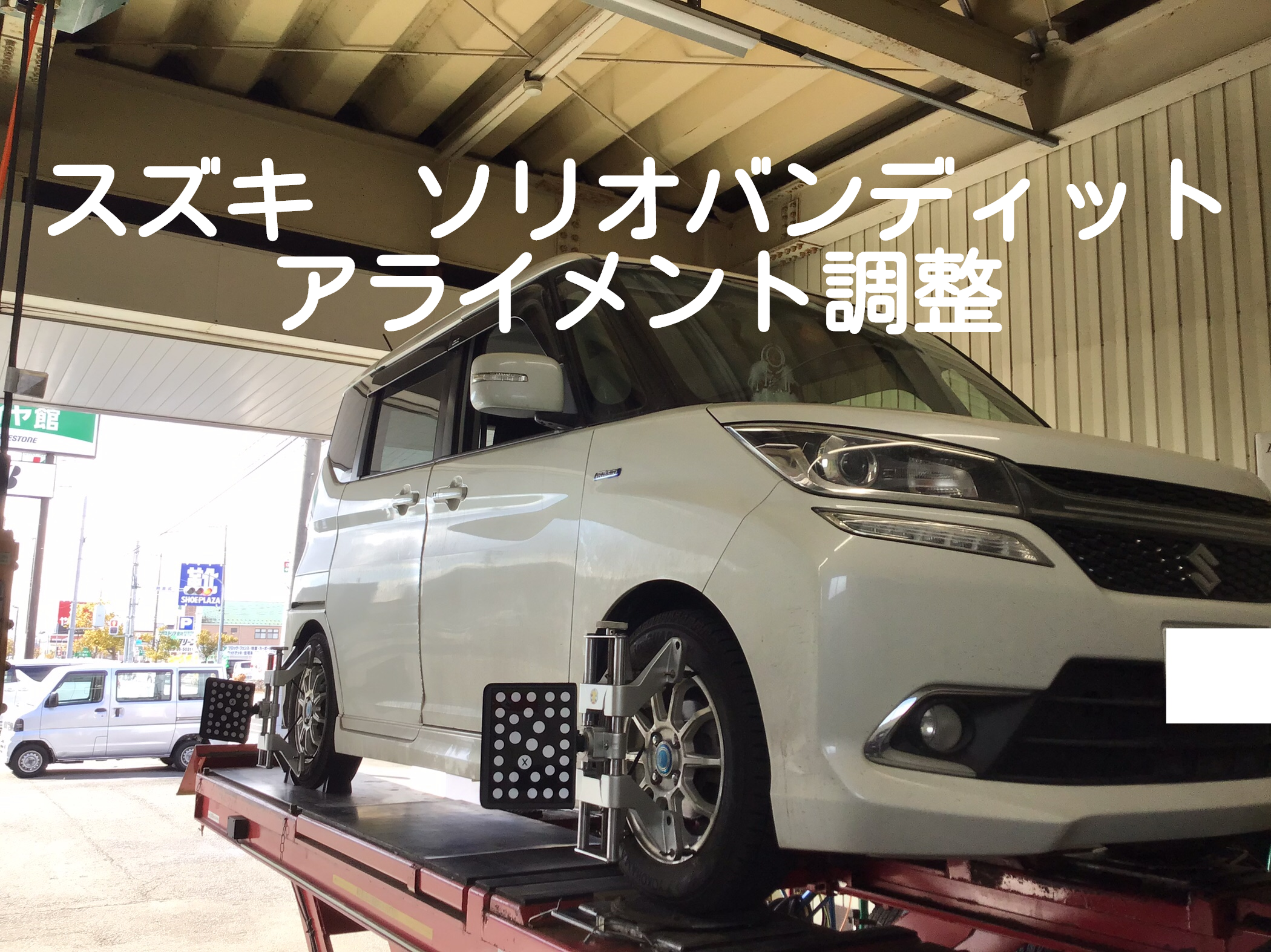 スズキ ソリオバンディット アライメント調整 タイヤ館石巻あけぼの ポスト 2023年2月27日 いつも当店をご利用いただき誠にありがとうございます 本日の作業の一コマ スズキ ソリオバンディットのアライメント調整作業です 通常フロント2か所の調整ですが、測定データよりフロントキャンバーも微調整しました 最近足廻りを交換したらしく、その後の調整依頼でした ○○様、本日はありがとうございました。