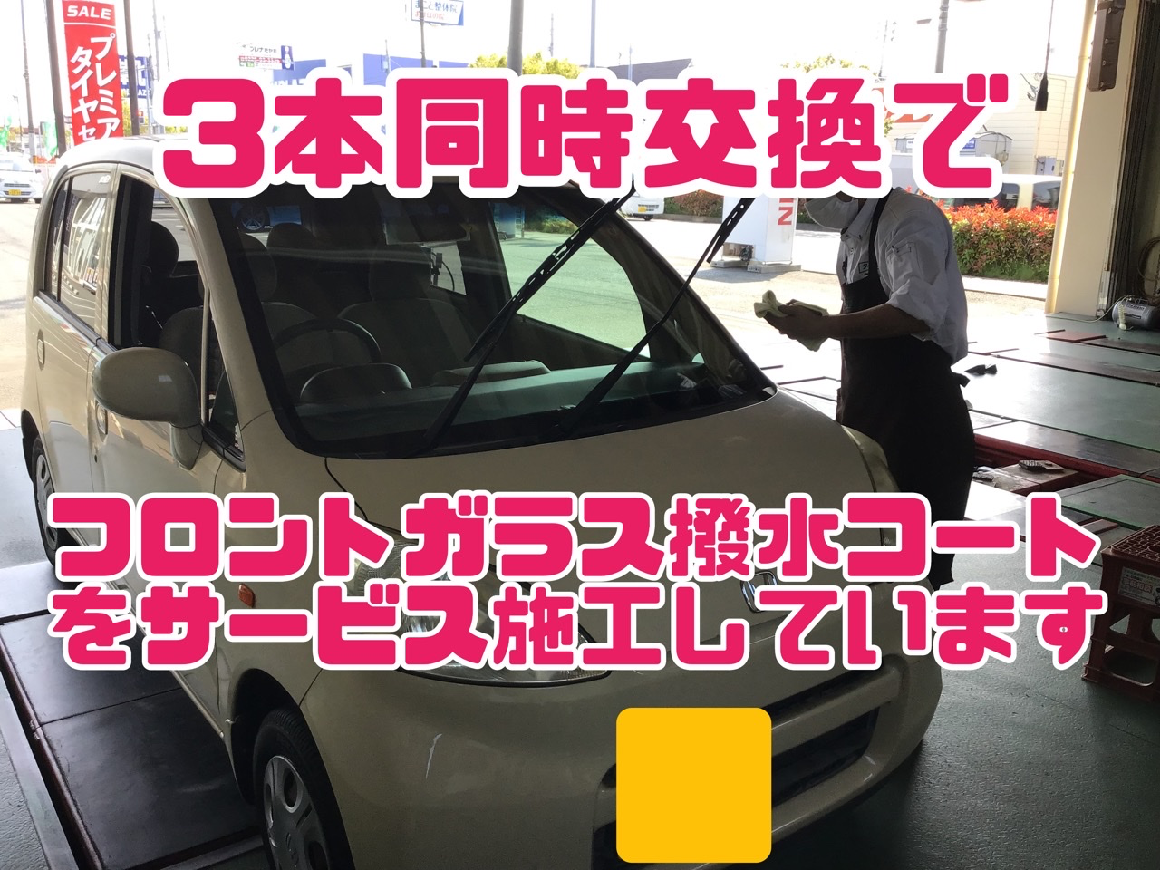 (当店ではフッ素系ガラスコート剤を使用していますので、ちょっと長持ちします)