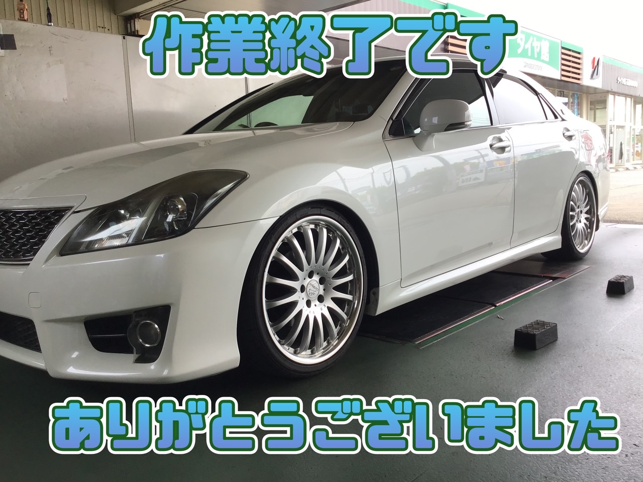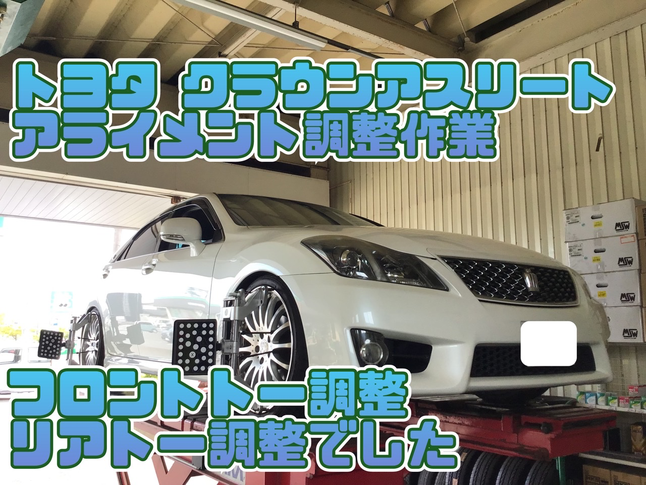トヨタ クラウンアスリート 車高調取り付け アライメント調整 タイヤ館石巻あけぼの