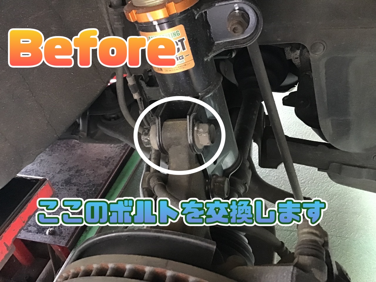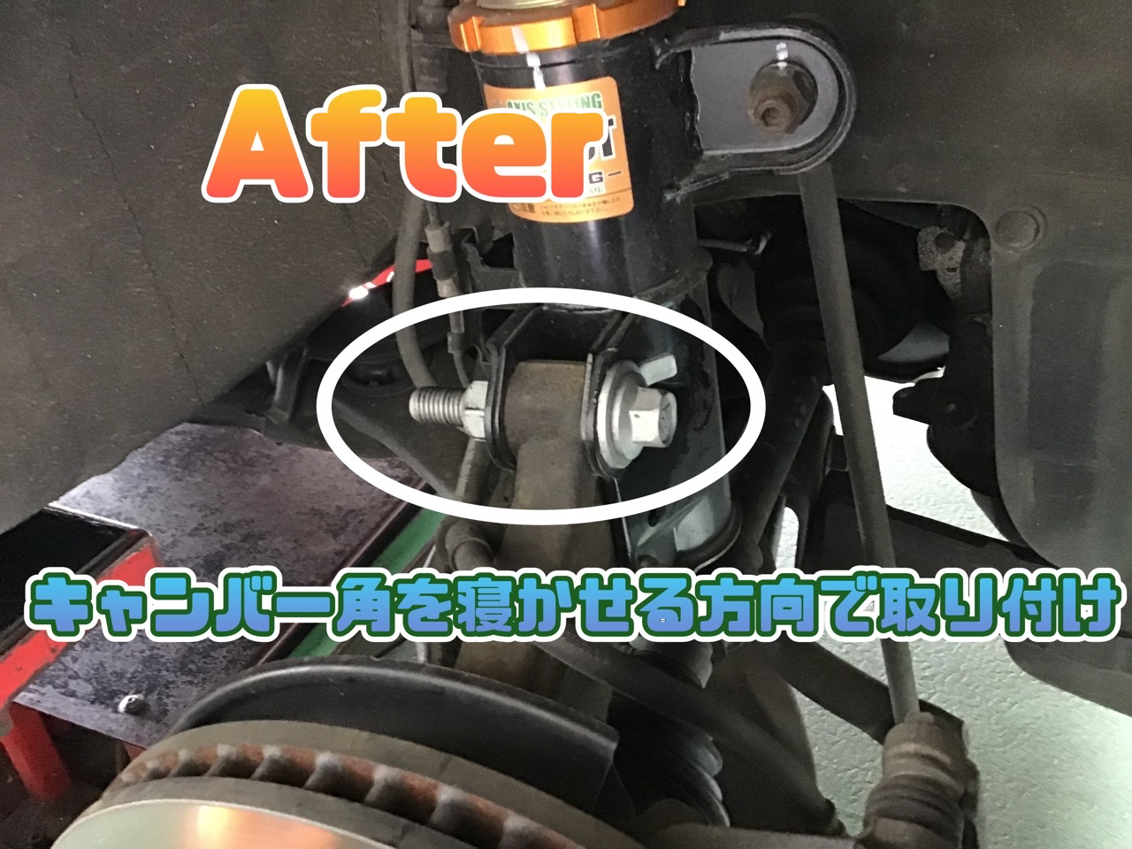 キャンバー角を調整できるボルトに交換することをご提案、作業となりました