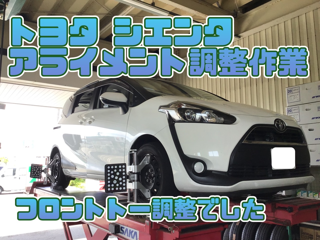 トヨタ シエンタ アライメント調整 タイヤ館石巻あけぼの ポスト 2023年7月13日 いつも当店をご利用いただき誠にありがとうございます 本日の作業の一コマ いつも当店をご利用いただく修理工場さんからの依頼で トヨタ シエンタのアライメント調整作業です フロント2ヶ所を調整、滞りなく終了です 本日はありがとうございました