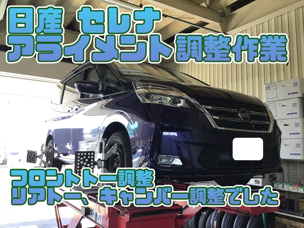 日産 セレナ アライメント調整 タイヤ館石巻あけぼの ポスト 2023年7月27日 いつも当店をご利用いただき誠にありがとうございます。 本日の作業の一コマ いつも当店をご利用いただく修理工場さんからの依頼で 日産 セレナのアライメント調整作業です フロント・リアの6カ所を調整、滞りなく終了です 本日はありがとうございました。