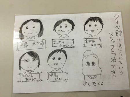癒されます ポスト 2014年11月26日 こんにちは、中島です。当店カウンターに当店スタッフの似顔絵があります。私の娘に描いてもらいました♪♪忙しいこの時期に見ると、ふと癒される画です。我が娘ながらなかなか特徴を捉えた上手な画だと思います(親ばか)さぁ、もうひとふんばりしますか!! 担当:中島
