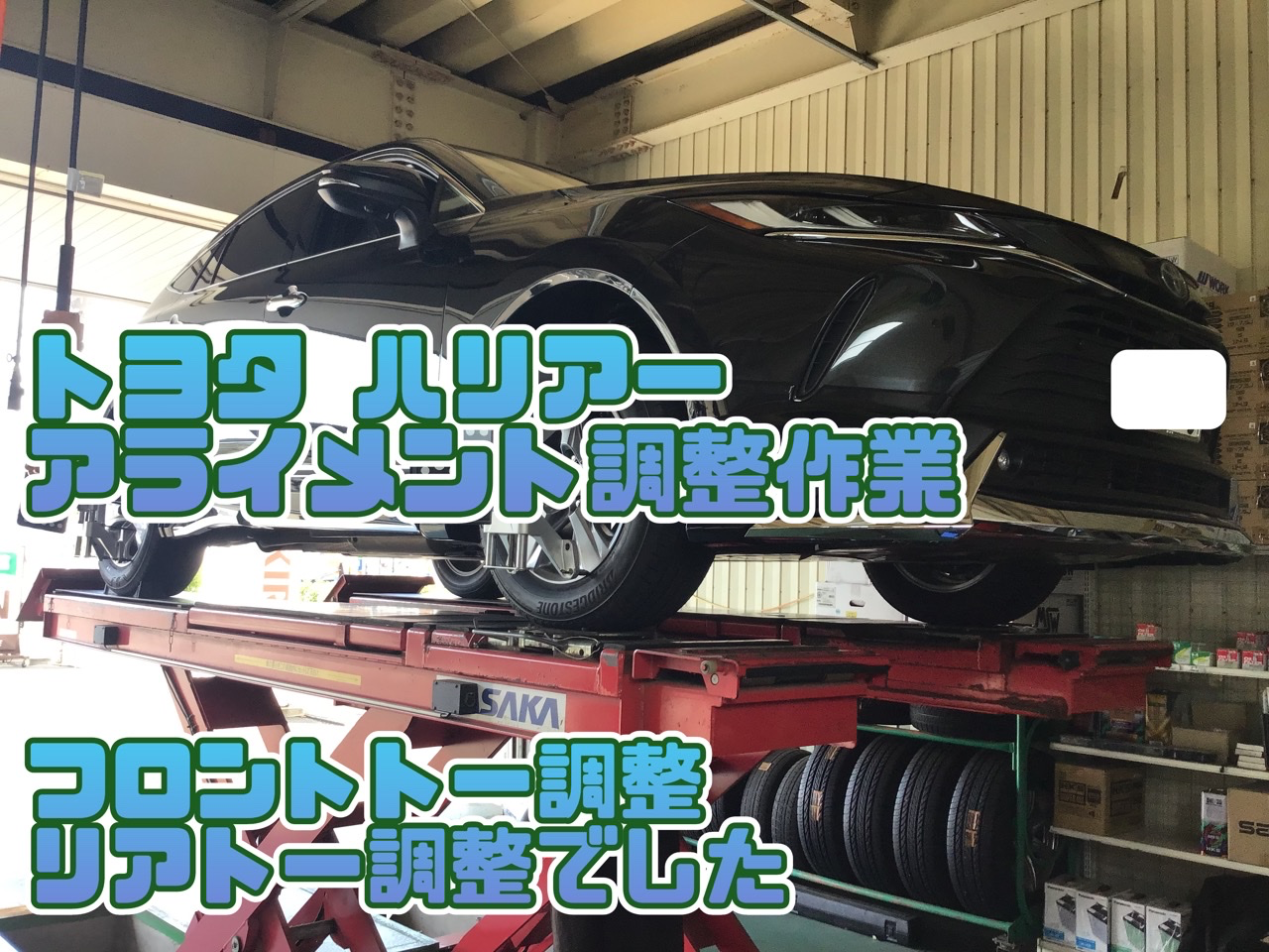 トヨタ ハリアー アライメント調整 タイヤ館石巻あけぼの ポスト 2023年9月16日 いつも当店をご利用いただき誠にありがとうございます 本日の作業の一コマ いつも当店をご利用いただく修理工場さんからの依頼で トヨタ ハリアーのアライメント調整作業です フロント・リアの4か所を調整しました。 本日はありがとうございました。