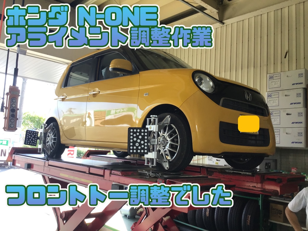 ホンダ N-ONE アライメント調整 タイヤ館石巻あけぼの ポスト 2023年9月17日 いつも当店をご利用いただき誠にありがとうございます 本日の作業の一コマ いつも当店をご利用いただく修理工場さんからの依頼で ホンダ N-ONEのアライメント調整作業です フロント2か所を調整しました。 先方がお休みなので、連休明け納車です 本日はありがとうございました。