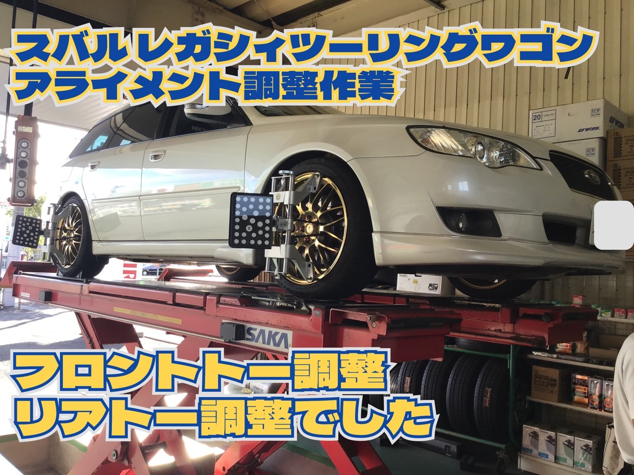 スバル レガシィツーリングワゴン アライメント調整 タイヤ館石巻あけぼの ポスト 2023年10月12日 いつも当店をご利用いただき誠にありがとうございます 本日の作業の一コマです スバル レガシィツーリングワゴンのアライメント調整作業です 懐かしい型式のレガシィの来店でした こちらはフロント・リアの4ヶ所を調整しました 本日はありがとうございました。