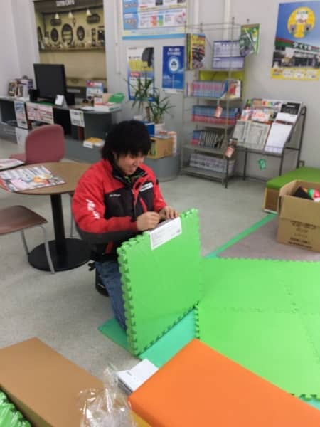 齋藤君はキッズコーナーの模様替え(ぴんぼけだぁ)