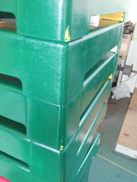 塗り残し・・・>< ポスト 2016年6月5日 こんにちは、鈴木です^^先日塗り終えたタイヤを載せるパレットを移動中発見してしまいました^^;二つほど角の下のほうが塗られていないのを><それと下の画像の剥げているところがあるのですがパレットを運ぶ台車のタイヤが当たるみたいで剥げちゃってます><気にはなりますがもう塗り終わったのでこのまま放置ですw今度何か塗るときは気を付けようw(鈴木)