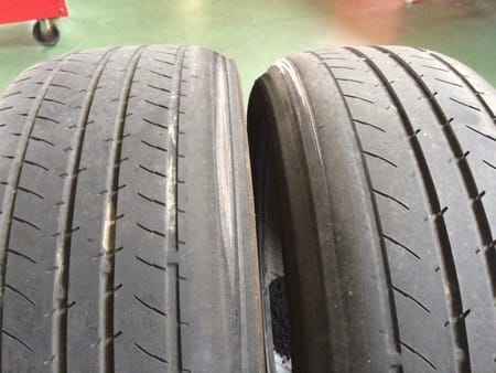 画像のようなタイヤの状態(1枚目)ですと、タイヤ交換になってしまって当店の