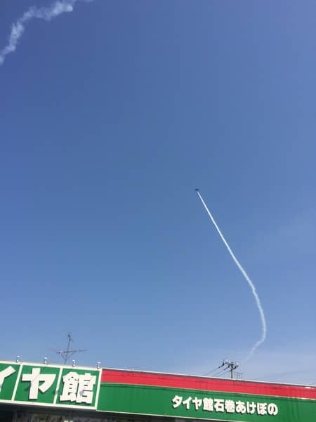 西日がきびしい・・・ ポスト 2015年5月14日 こんにちは、中島ですいやぁ、暑いですね・・・。当店の作業もかなり落ち着き、だいぶまったりしております。なので今日は当店上空を飛ぶブルーインパルスが見れましたので写真撮ってみました。いつ見てもやっぱりかっこいいなぁ・・・。一ヶ月前までに申し込むと、松島基地で見学できるようです。いつか行ってみたいですね。 担当:中島
