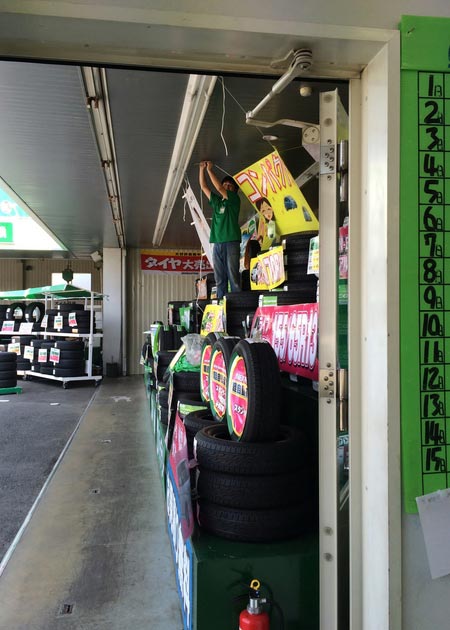 そして、外では齋藤くんがタイヤ展示室をリニューアル中( ^ω^ )☀︎