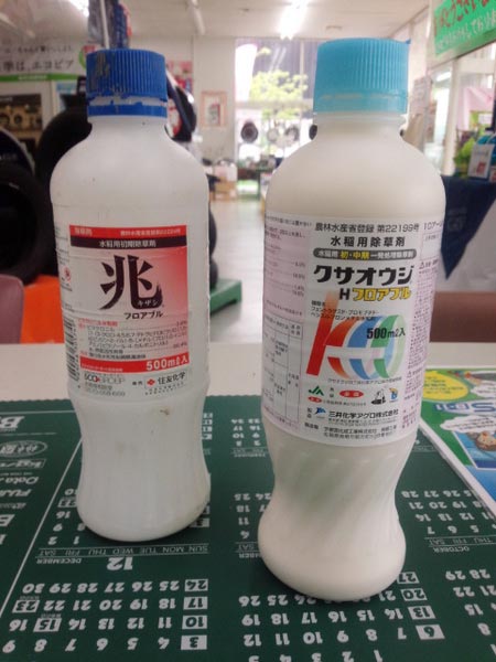 先日除草剤を降った後田んぼに青のろが付きそれの処理と