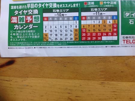 早めのタイヤ交換をオススメしています。石巻エリアは11月初旬以降