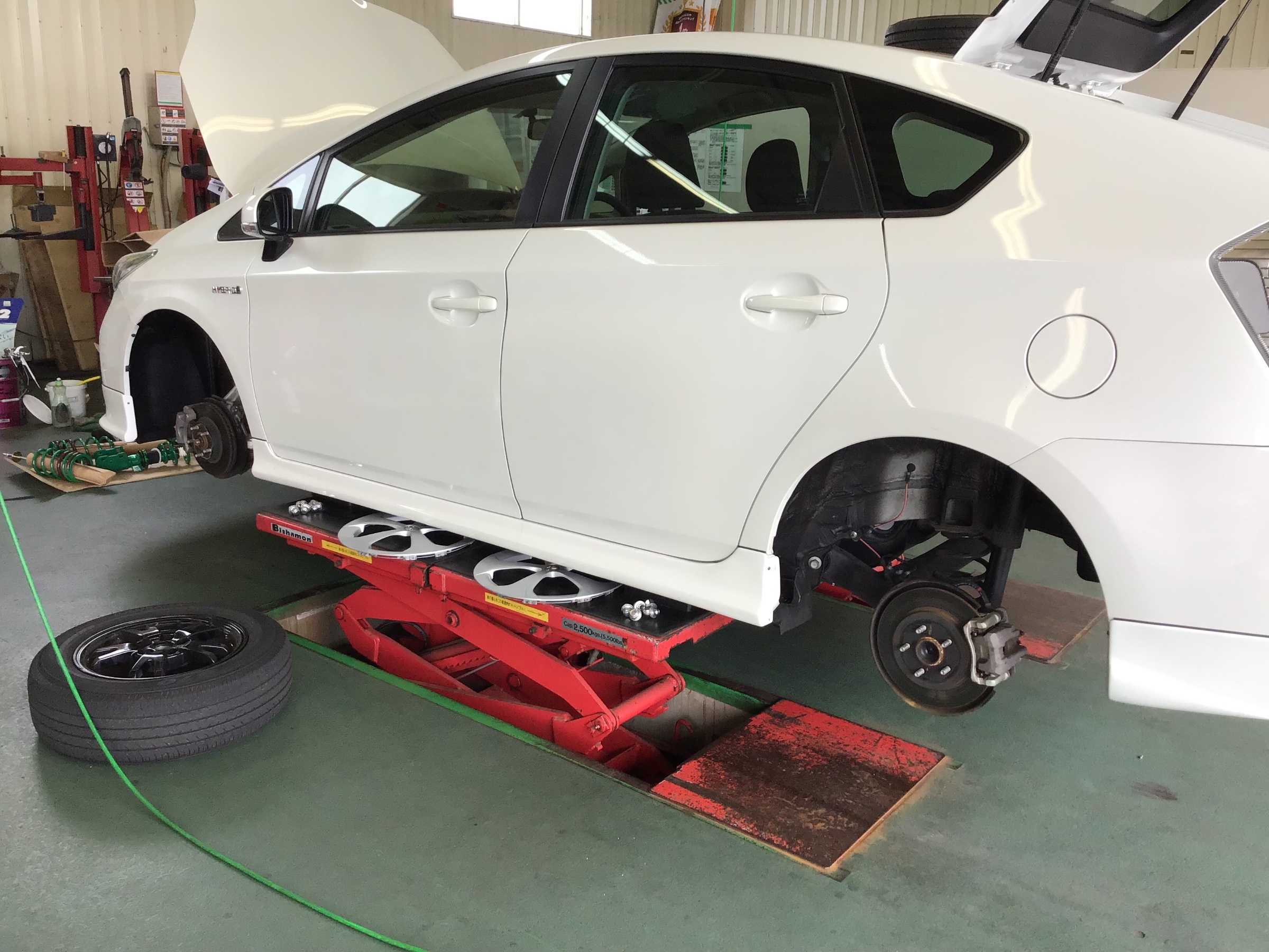 本日はトヨタ プリウスの車高調交換を行いました。
