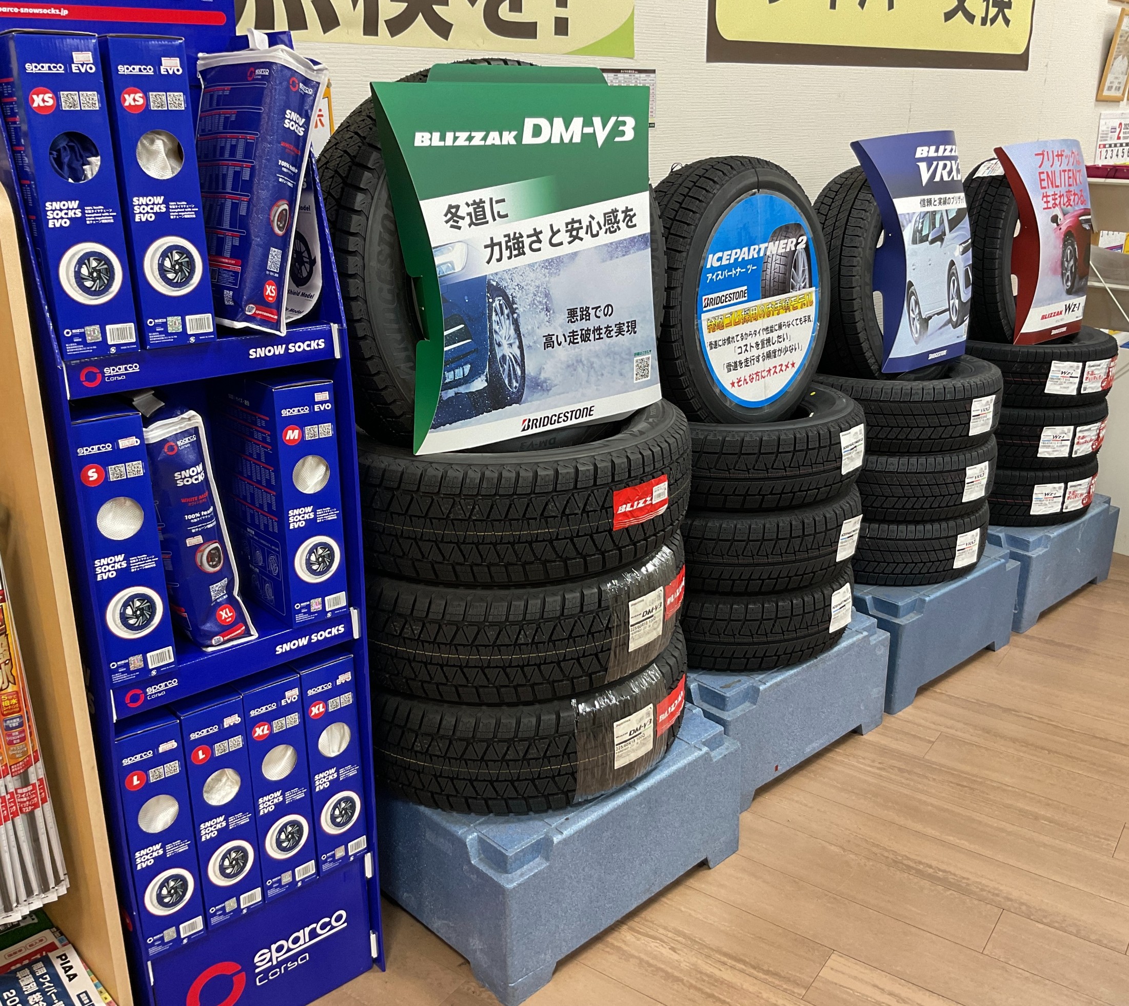 スタッドレスタイヤ&布製チェーン在庫あります!!