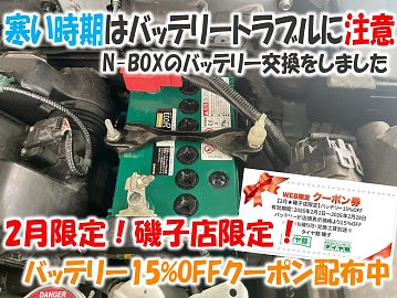 2月の磯子店はバッテリーがお得!!N-BOXのバッテリー交換事例