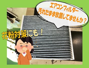 エアコンフィルターは定期的に交換を!!無料点検はタイヤ館磯子へ