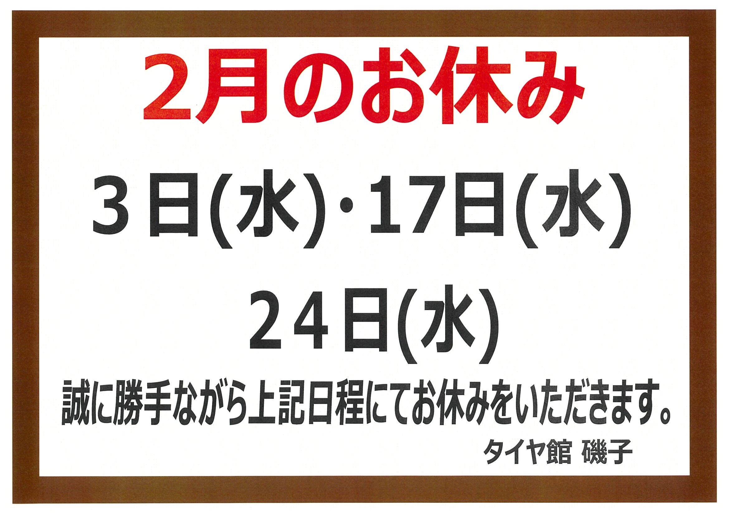 定休日のご案内です