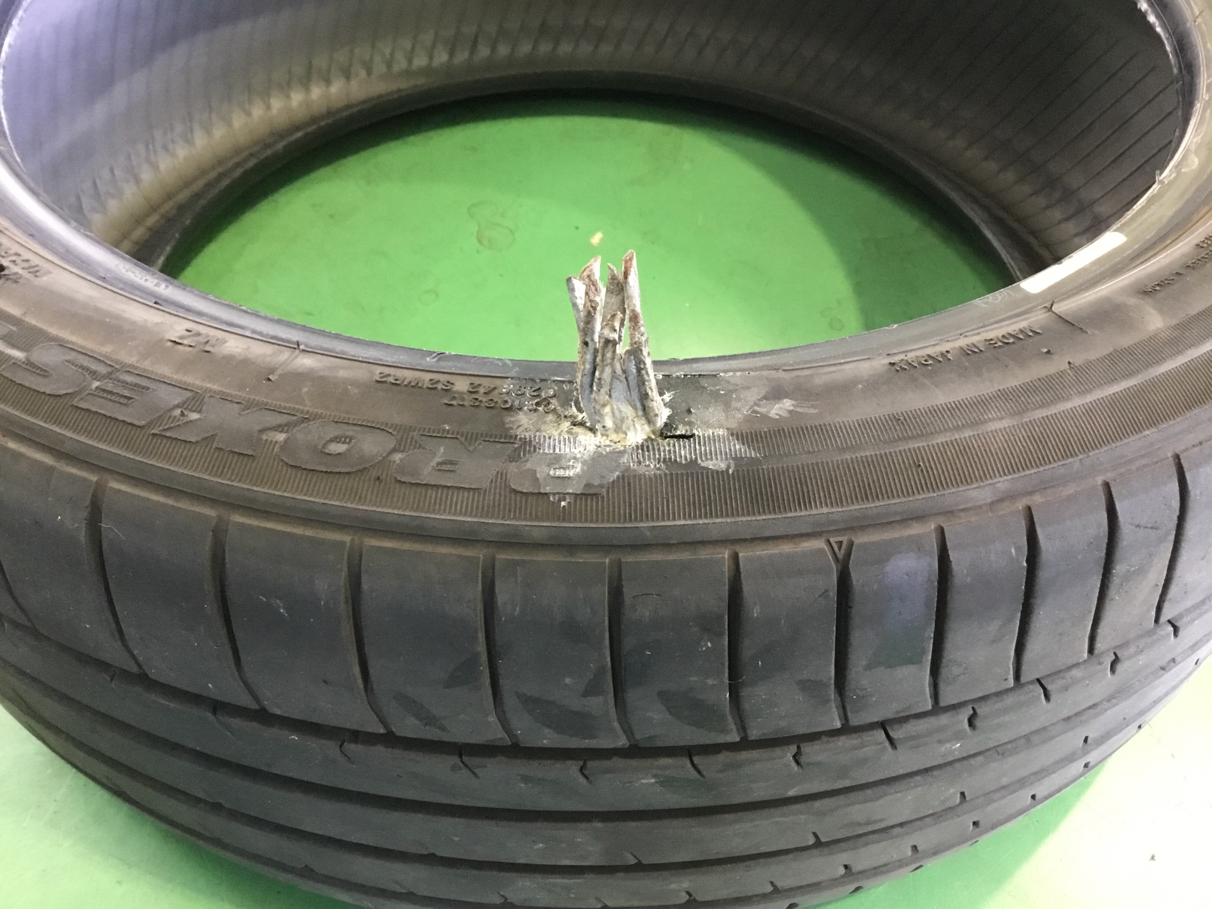 こちらのお客様は縁石にぶつけた影響によりタイヤのサイドに穴が空いてしまい