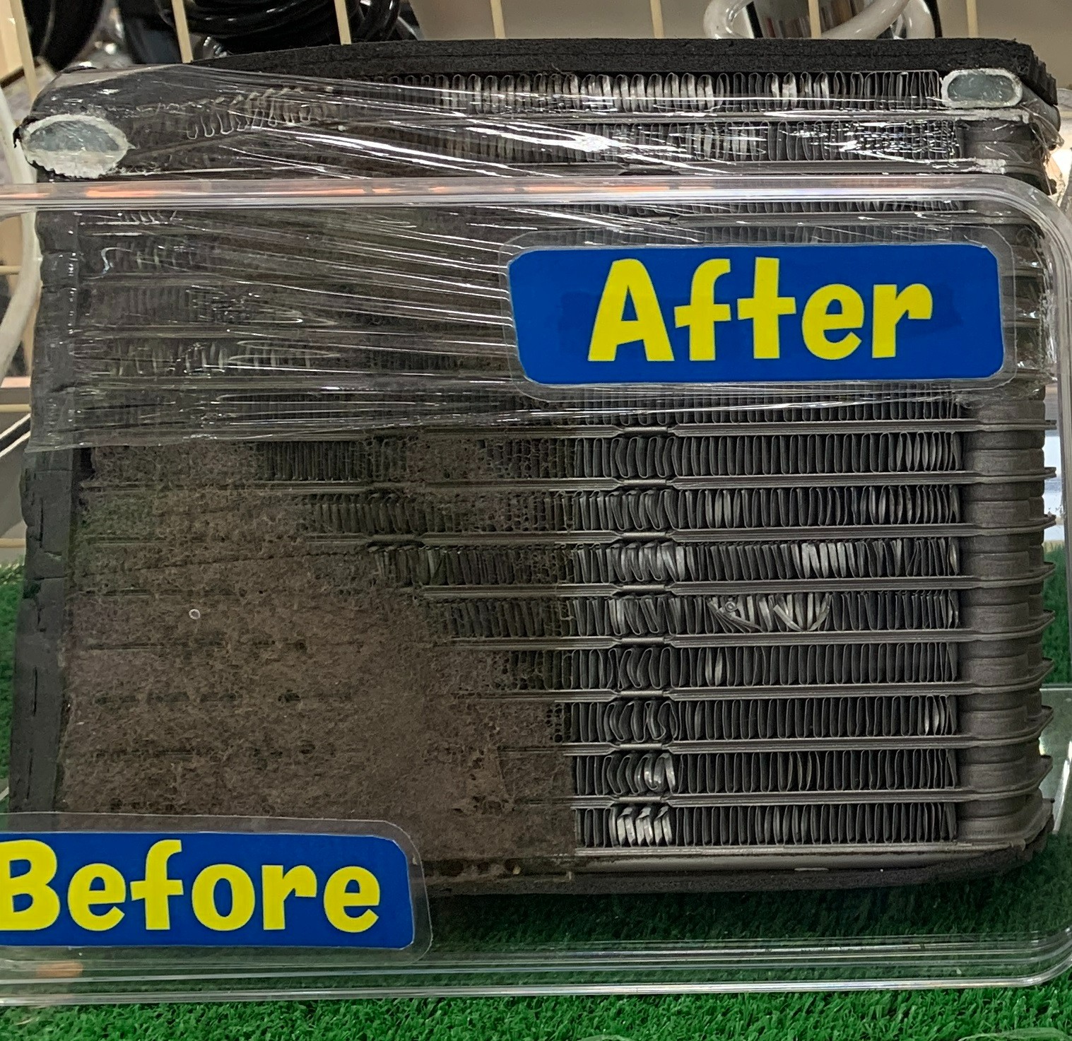エバポレーターとは、カーエコアンの内部にある熱交換器を指します。