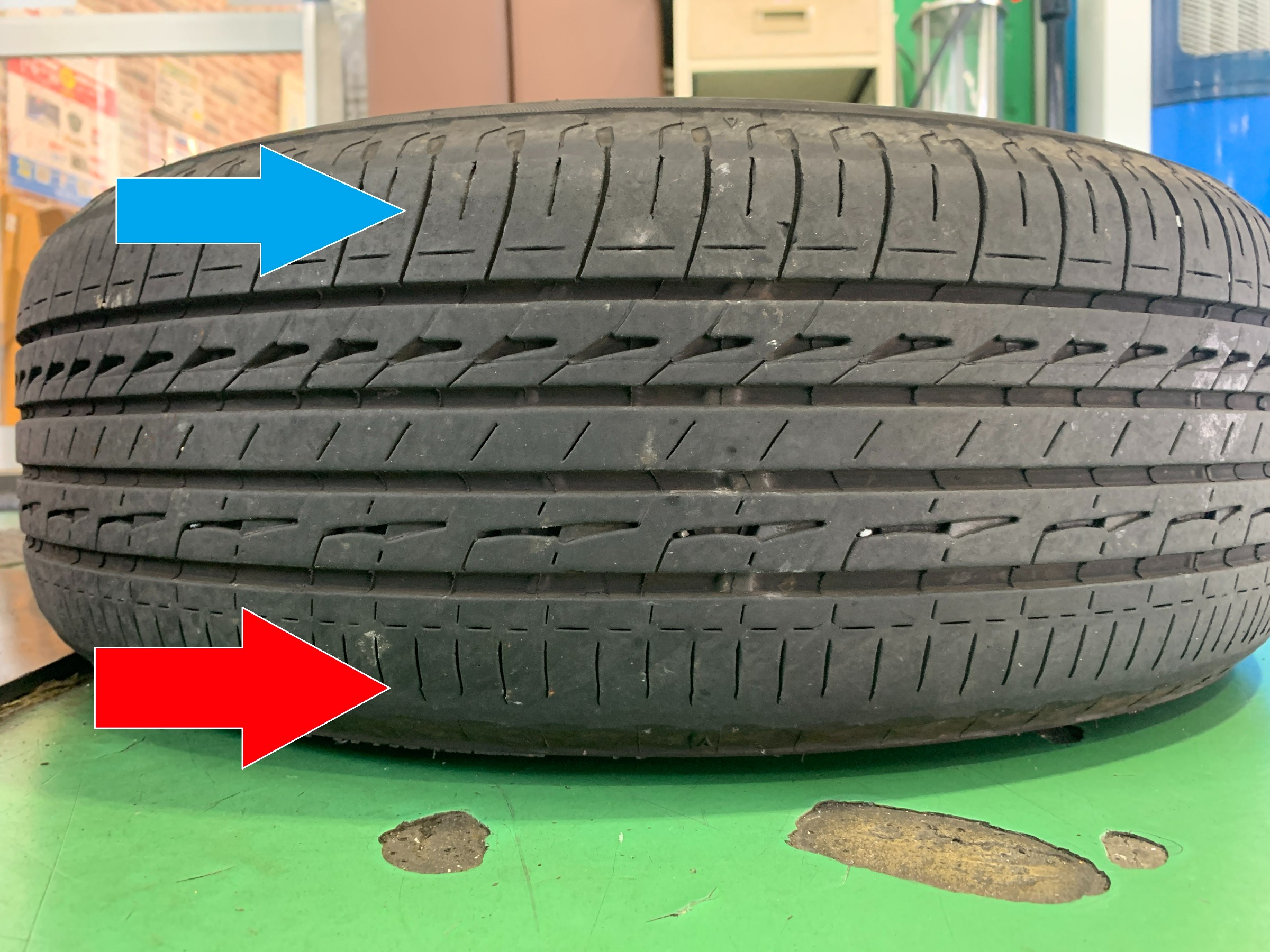 このようにタイヤの減り方に偏りがあることを偏摩耗といい、