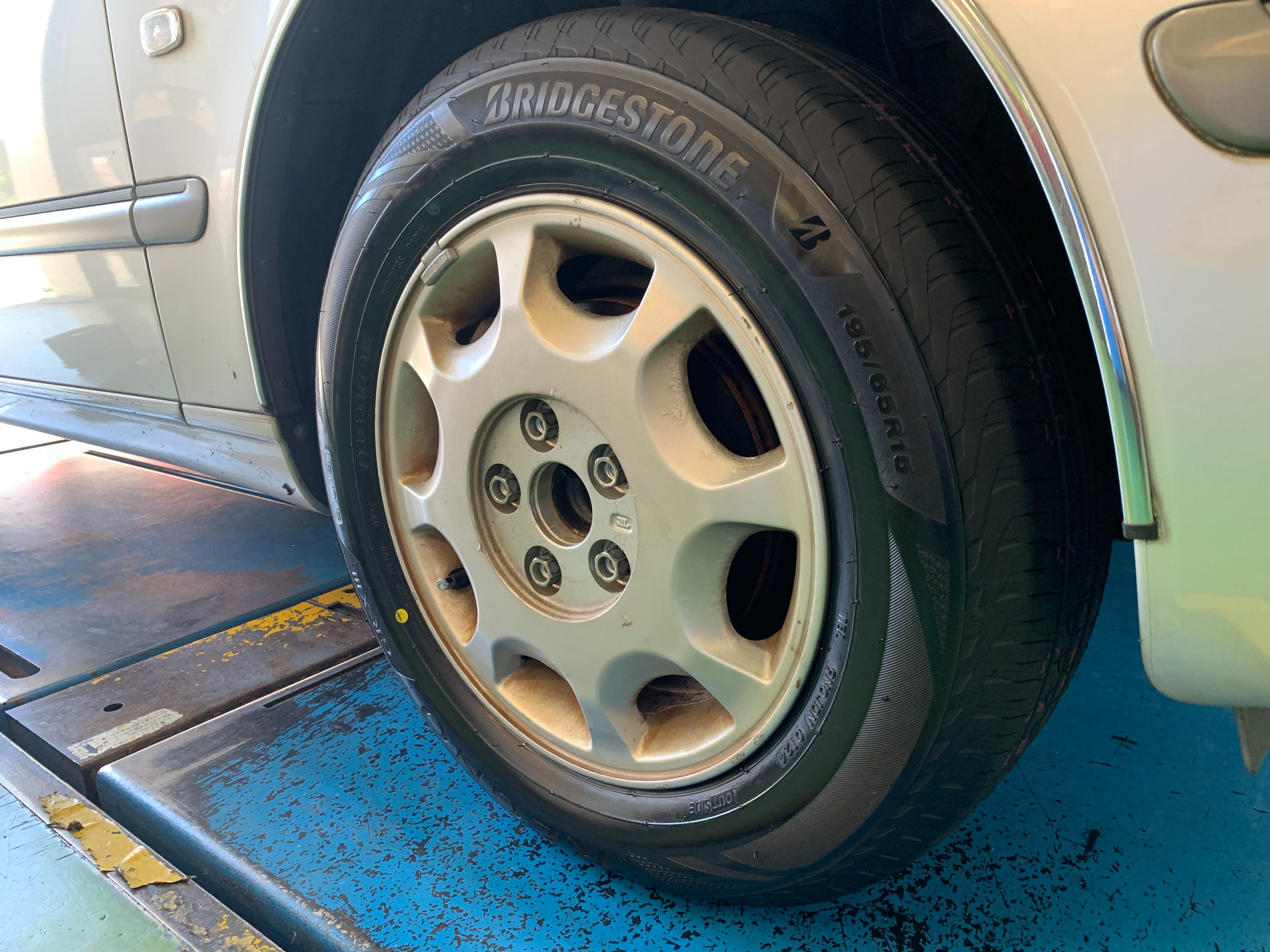 タイヤ交換後にアライメント調整をしていきます!
