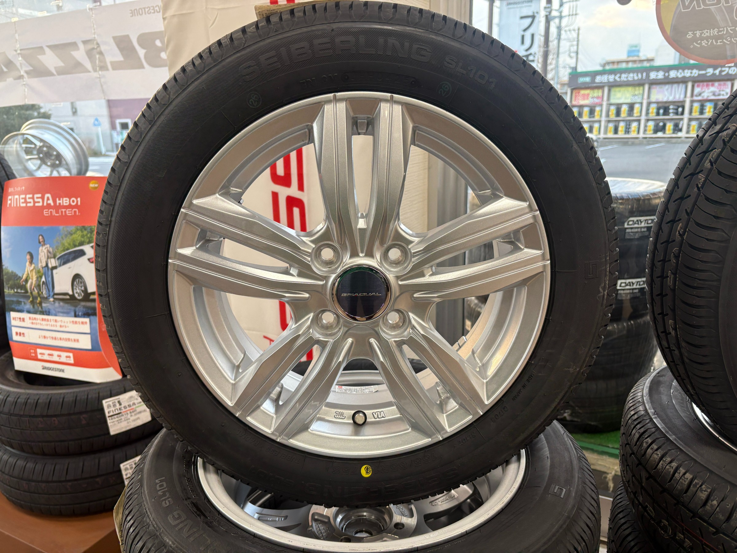 タイヤサイズは3セットすべて"セイバーリング 155/65R14"です